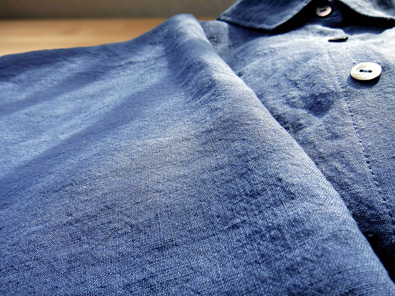 リネンは水に強く、吸水性はコットンの約4倍と言われています。それでいて発散性があるため、乾きやすいという特徴もあります。また、熱も逃しやすく、通気性にも優れています。使いこむほどに風合いが変化し、味わいも増していきます。